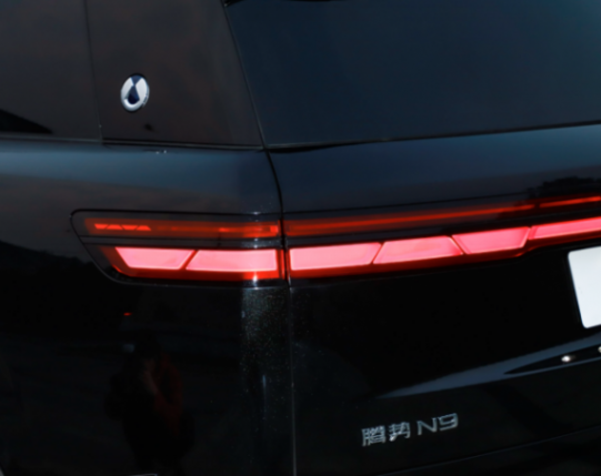 尾部設計就屬于極簡風格了,騰勢N9的車尾除了貫穿式尾燈組很難再看到其它設計思路,包括尾燈組在沒有點亮時也給人一種簡約到極致的感覺,只是點亮后內部結構有著一定辨識度,再配合尾燈組其實輪廓挺大,因此能牢牢將路人目光聚集于此。