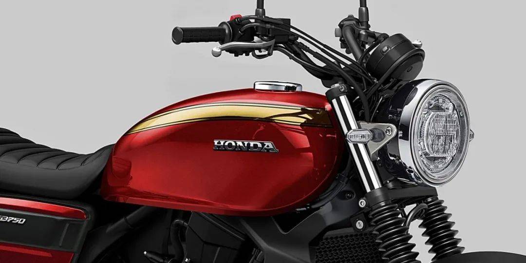 單環(huán)儀表、圓燈造型、毛毛蟲坐墊,深紅色亮面烤漆油箱加上金色拉線點綴,配上簡約的本田LOGO。雖然雙缸引擎顯得不夠豐滿,但這個復(fù)古感可以說是直接拉滿了。