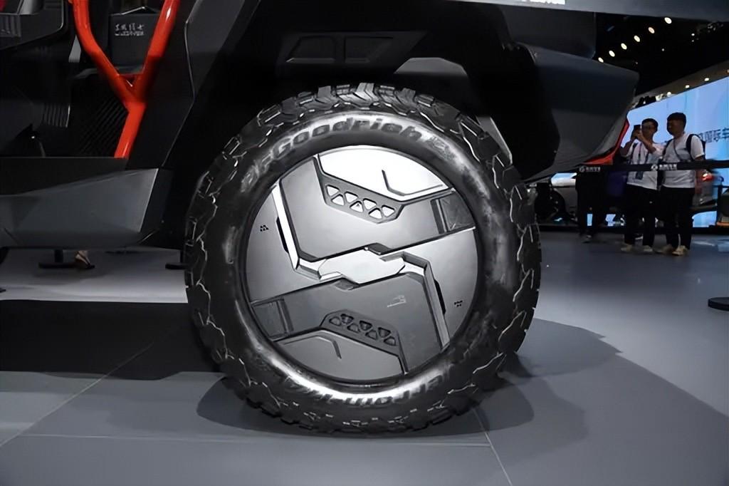 車身側面保持了堅實的越野車線條,去除了傳統車門,改為更適合極限挑戰的簡化護欄。使用37英寸寬胎和封閉式輪轂,這不僅降低了空氣阻力,還通過深花紋的輪胎提供了卓越的牽引力。車身廣泛使用的碳纖維材料,不僅減輕了重量,也增強了車輛的敏捷性。