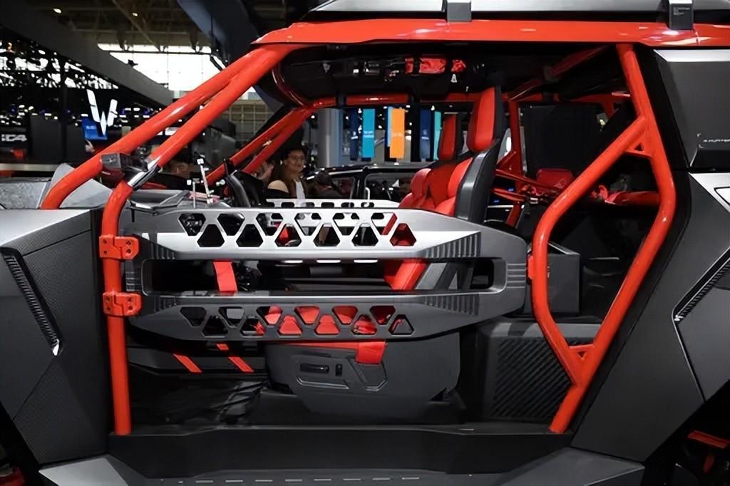 內飾方面,猛士M-HUNTER采用全包圍式賽車桶座椅,提供了優異的支撐和包裹性,強調了其運動性格。內部大量采用鏤空設計,不僅減輕了重量,也增強了車內空間的多功能性。