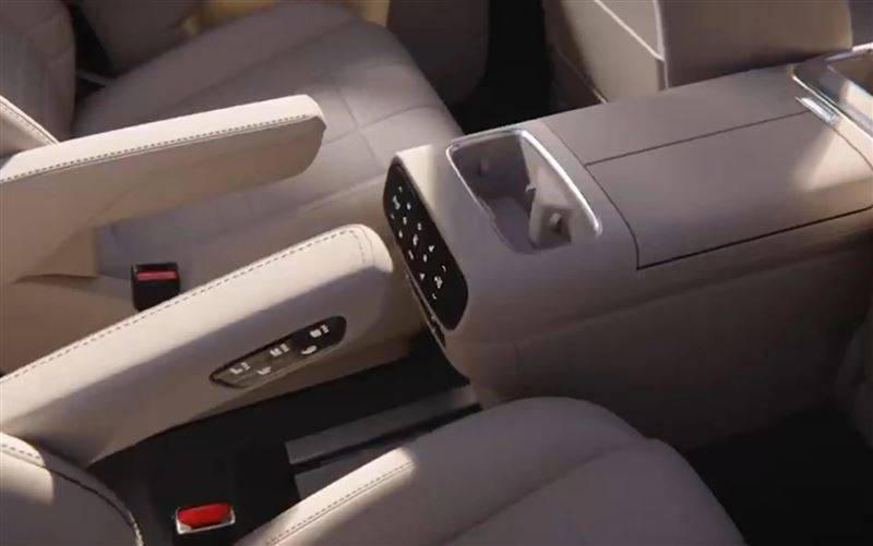 內飾方面,深藍S09取消了傳統的儀表臺設計,取而用AR-HUD抬頭顯示系統展現車輛相關信息與導航線路,以 提升駕駛專注度。中控區域,新車配則配備有由中控屏+副駕娛樂屏構成的一體式高清屏,以同時滿足駕駛員與副駕乘客對中控屏的需求。針對后排用戶的交互娛樂需求,新車還配備有吸頂大屏;此外,深藍S09還在座艙內配備有具備700mm前后滑動距離的可移動中島,并在其中布置有雙無線手機充電、前后端雙杯座與冷熱保溫箱的設計。從這些細節處不難看出,深藍S09正如其產品定位一樣非常注重家庭化乘車場景的體驗。