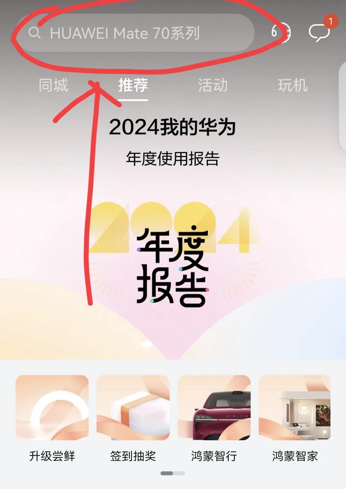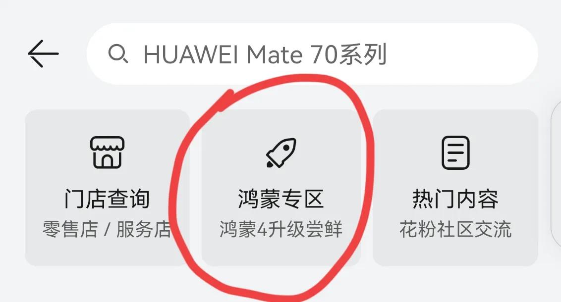 無(wú)需輸入文字,就會(huì)出現(xiàn)這個(gè)界面,我們點(diǎn)擊“鴻蒙專區(qū)”: