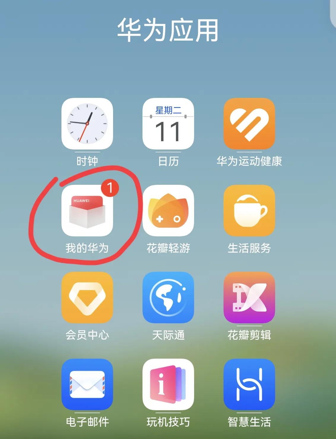 第二步:找到華為手機(jī)自帶的軟件——我的華為,進(jìn)入軟件: