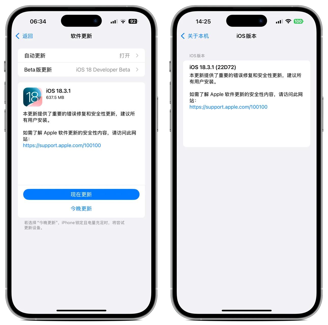 北京時間今日凌晨,蘋果向全球用戶推送了 **iOS 18.3.1 正式版(版本號:22D68),作為 iOS 18.3 的小版本迭代,本次更新包體積僅320MB 左右(不同機型略有差異),主打 “穩定性優化”和 “關鍵問題修復”,并未加入新功能,但根據實測,它可能是近期最值得升級的版本之一。