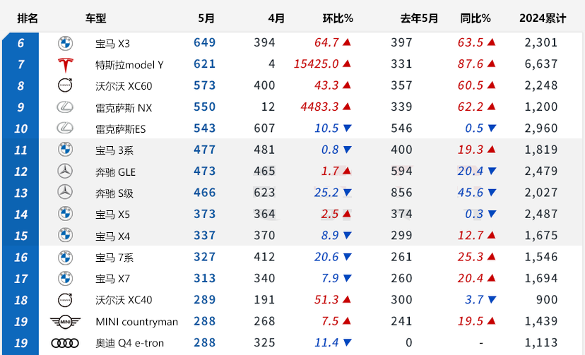 上個(gè)月Model 3售出3542輛,登上了進(jìn)口車的頂峰。截至4月,累計(jì)銷量?jī)H為1731輛,一次進(jìn)口量是1-4月銷量的兩倍。今年累計(jì)銷量也一舉飆升至第四位(5273輛)。