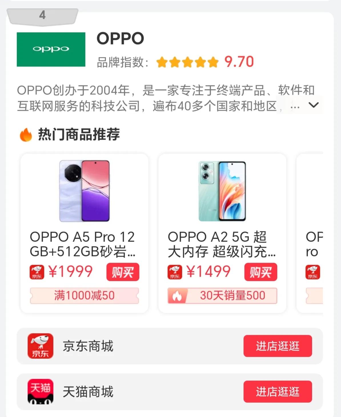 OPPO 以9.70的品牌指數位列第四,“拍照手機”的稱號實至名歸。A5 Pro和A2 5G系列手機不僅擁有出色的拍照性能,時尚的外觀設計也讓人眼前一亮。1999元 起的售價,讓OPPO成為了眾多年輕用戶的首選。