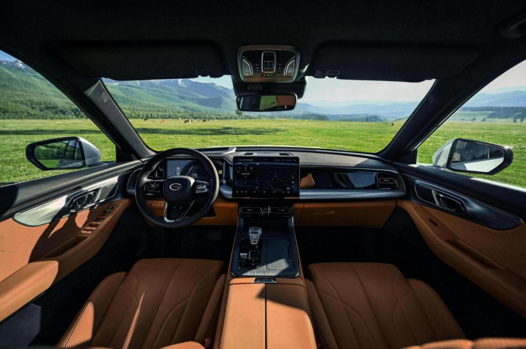 傳祺新能源ES9內部設計以中式奢華感官審美為靈感,不僅提供三種配色風格可選,還運用大面積軟質材料進行包覆和藝術質感零部件點綴,整體極具質感。同時,該車搭載采用8155芯片的超感交互智能座艙,內置全新一代ADiGO 4.0智駕互聯生態系統,具備AR-HUD、ADiGO 4.0智能物聯、ADiGO 4.0智能輔助駕駛等功能。