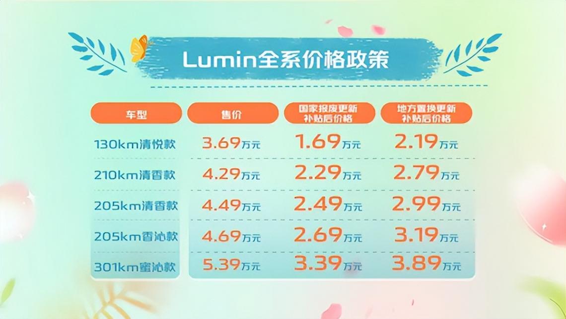 硬剛宏光MINI EV,長安Lumin清香款正式上市