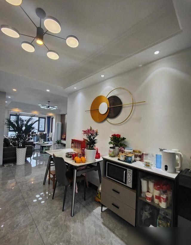 再看餐廳的小巖板方桌和側畔壁柜,沒有選流行的“圓桌顯團圓”,反而用方桌適配小家庭的日常圍坐;壁柜不是單純的“顏值擔當”,而是實實在在用“網紅設計”解決了“碗碟沒處放”的麻煩。這種“取其精華,去其冗余”的混搭思路,和今年大火的“中古風”異曲同工——中古風講究“功能主義與美學平衡”,拒絕為了復古而復古,只保留那些能提升生活效率的設計,比如幾何線條的家具、天然材質的軟裝。屋主顯然深諳此道:巖板的耐臟、壁柜的分層,都是“用設計服務生活”的典型。