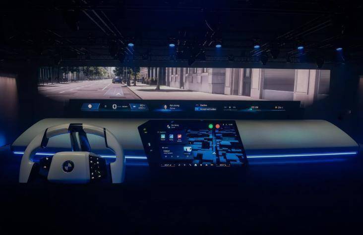 在此基礎上,全景iDrive還配備了3D抬頭顯示系統。該系統能夠利用鏡面反射原理,將導航信息和駕駛輔助信息與道路實景相結合,實現AR增強現實導航功能。當駕駛員遇到復雜路況或岔路口時,3D抬頭顯示系統能夠在擋風玻璃上直觀展示前進方向的箭頭,為駕駛員提供精準、直觀的導航指引。這一創新設計不僅提升了導航的便捷性,更讓駕駛者在享受科技便利的同時,保持對道路環境的清晰感知。