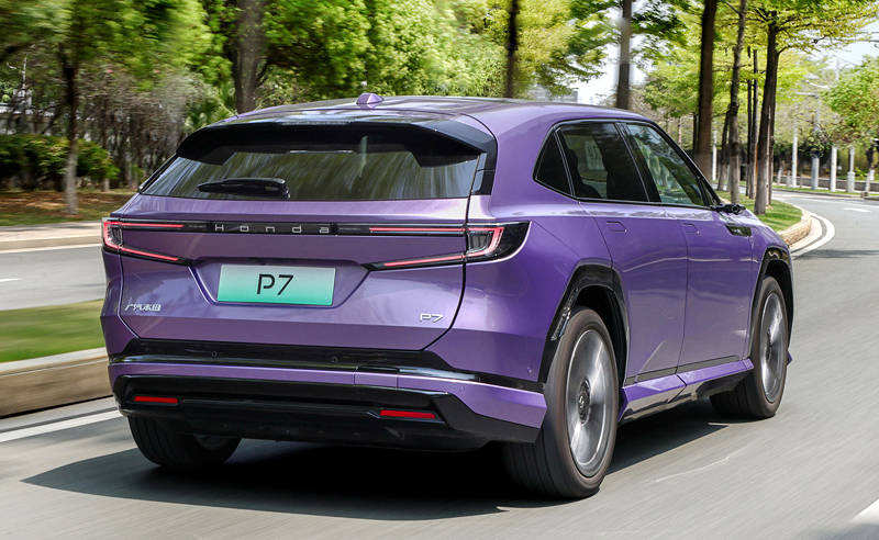 采用單電機/雙電機驅動的廣汽本田P7,CLTC純電續(xù)航里程分別為620公里和650公里,既支持快充也支持對外放電,提供了兩驅和四驅車型可供選擇。該車的懸架為前雙叉臂式后五連桿式獨立懸架,車長為4750mm,軸距為2930mm。