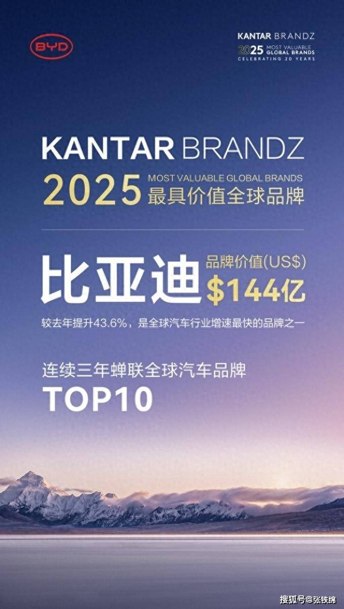 品牌價值同比飆升43.6%,比亞迪榮登2025凱度全球汽車品牌榜第六