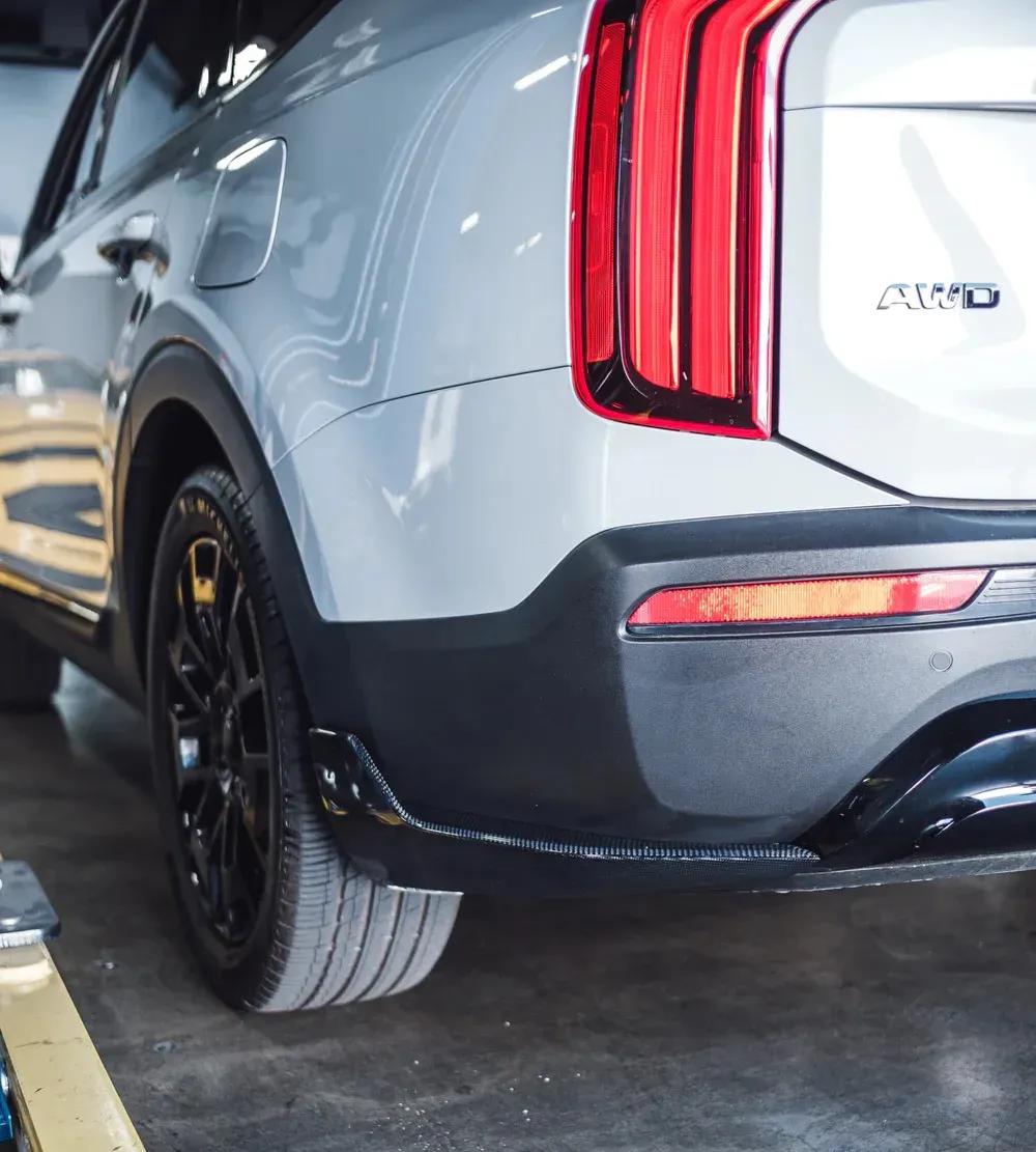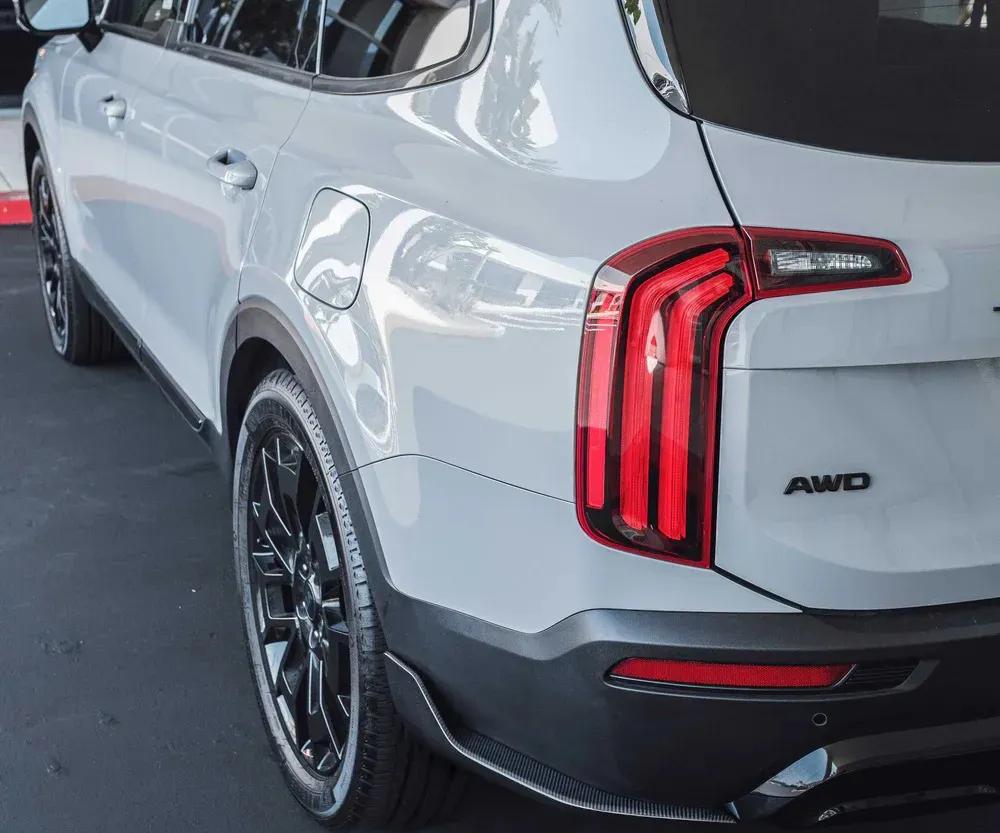 車身側面線條流暢且硬朗,凌厲的腰線從前翼子板一直延伸到車尾,搭配大尺寸的輪轂,展現出強烈的運動感。車尾部分,Telluride 采用了豎條形的尾燈設計,與前大燈形成呼應,進一步增強了整車的豪華感。
