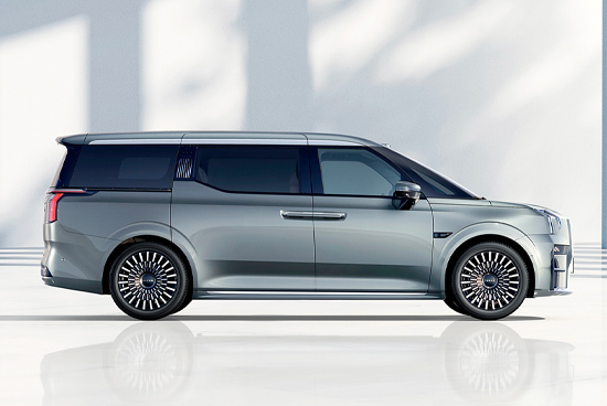 外觀方面,極氪009采用直瀑式鍍鉻格柵設計,內含LED燈組,夜間辨識度極高。側面為方正的造型設計,從而提供充足的車內乘坐空間。此外,極氪009在側裙部位同樣增加了鍍鉻裝飾,提升時尚感。