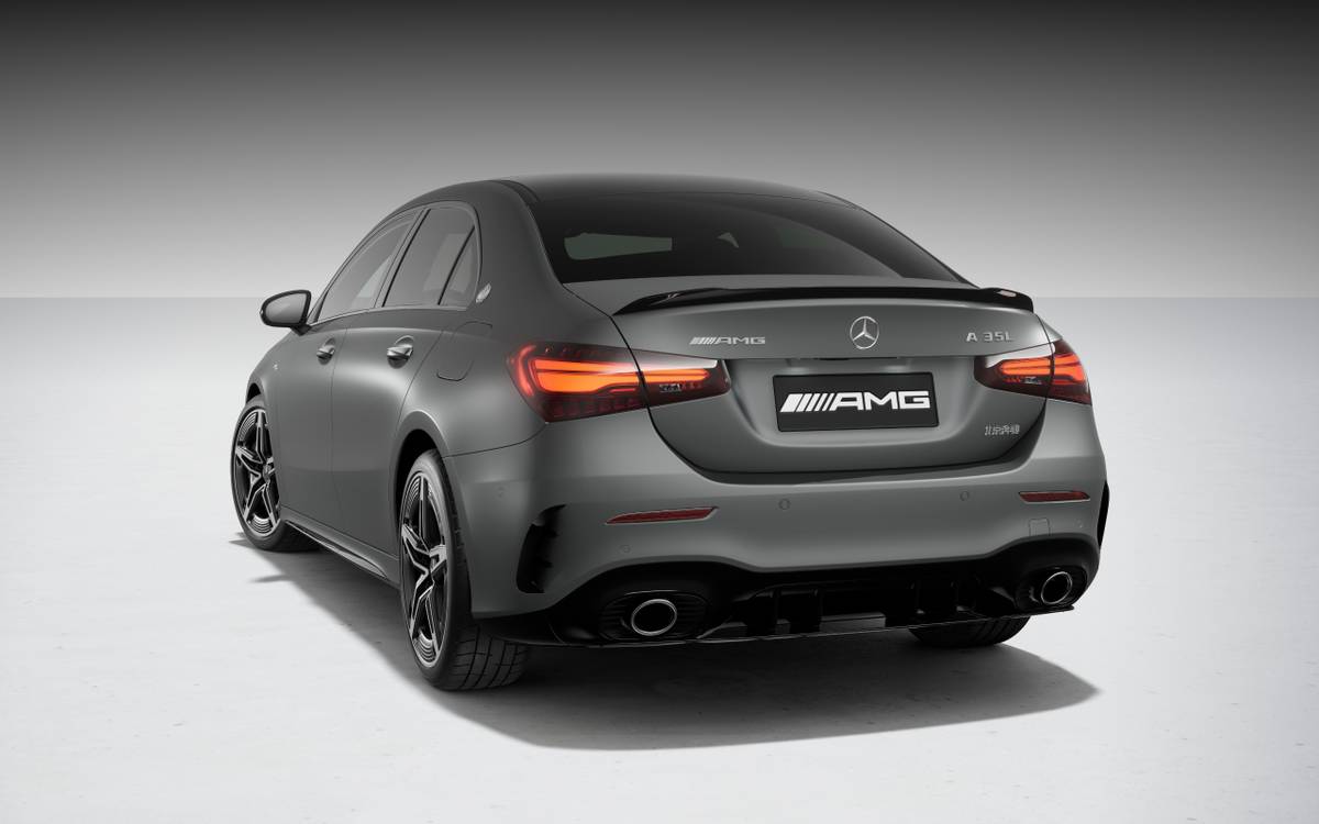 側面來看,新車的身型硬朗且緊湊,搭配貫穿式腰線和優美的車頂曲線,符合AMG的運動化氣質。此外,新款A級AMG還配備19英寸AMG雙五輻輕合金車輪,噴涂啞光黑漆,車尾搭載大尺寸高光黑色AMG尾翼和雙邊共兩出大孔徑圓形排氣管,成為其性能身份的鮮明標志。