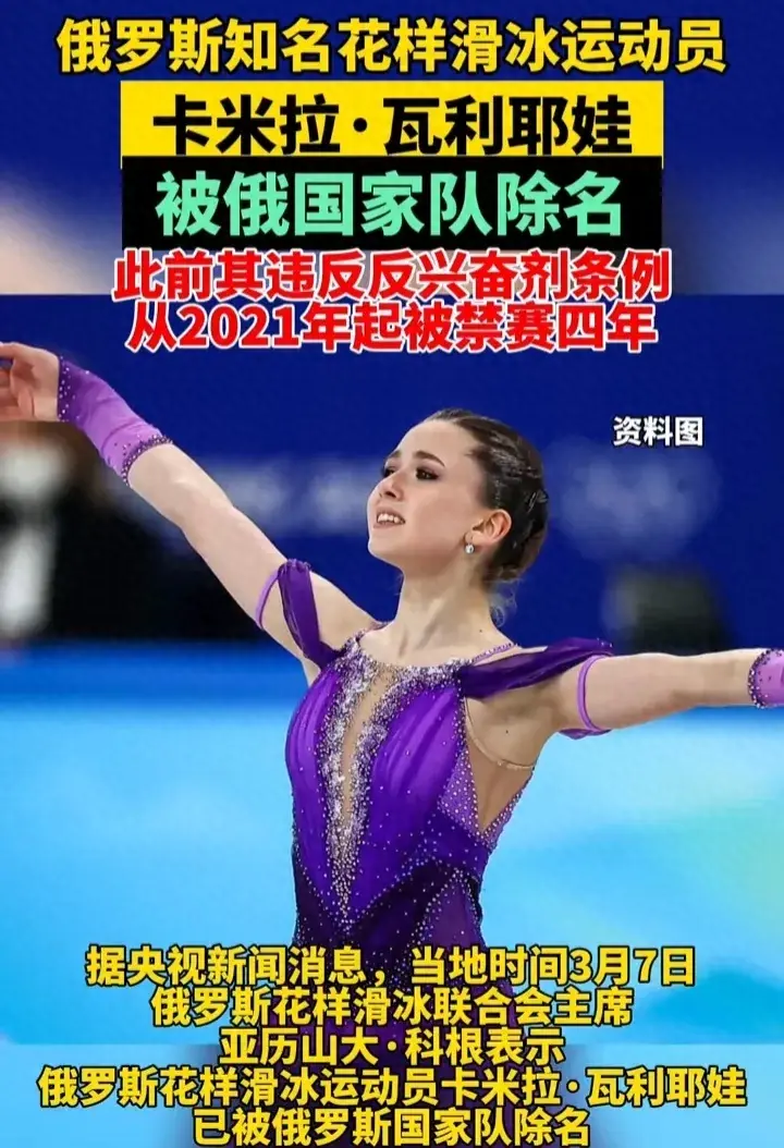 由于違反反興奮劑規定,卡米拉·瓦利耶娃被處以禁賽四年的處罰,這意味著她將錯過2026年米蘭冬奧會以及其他重要賽事。