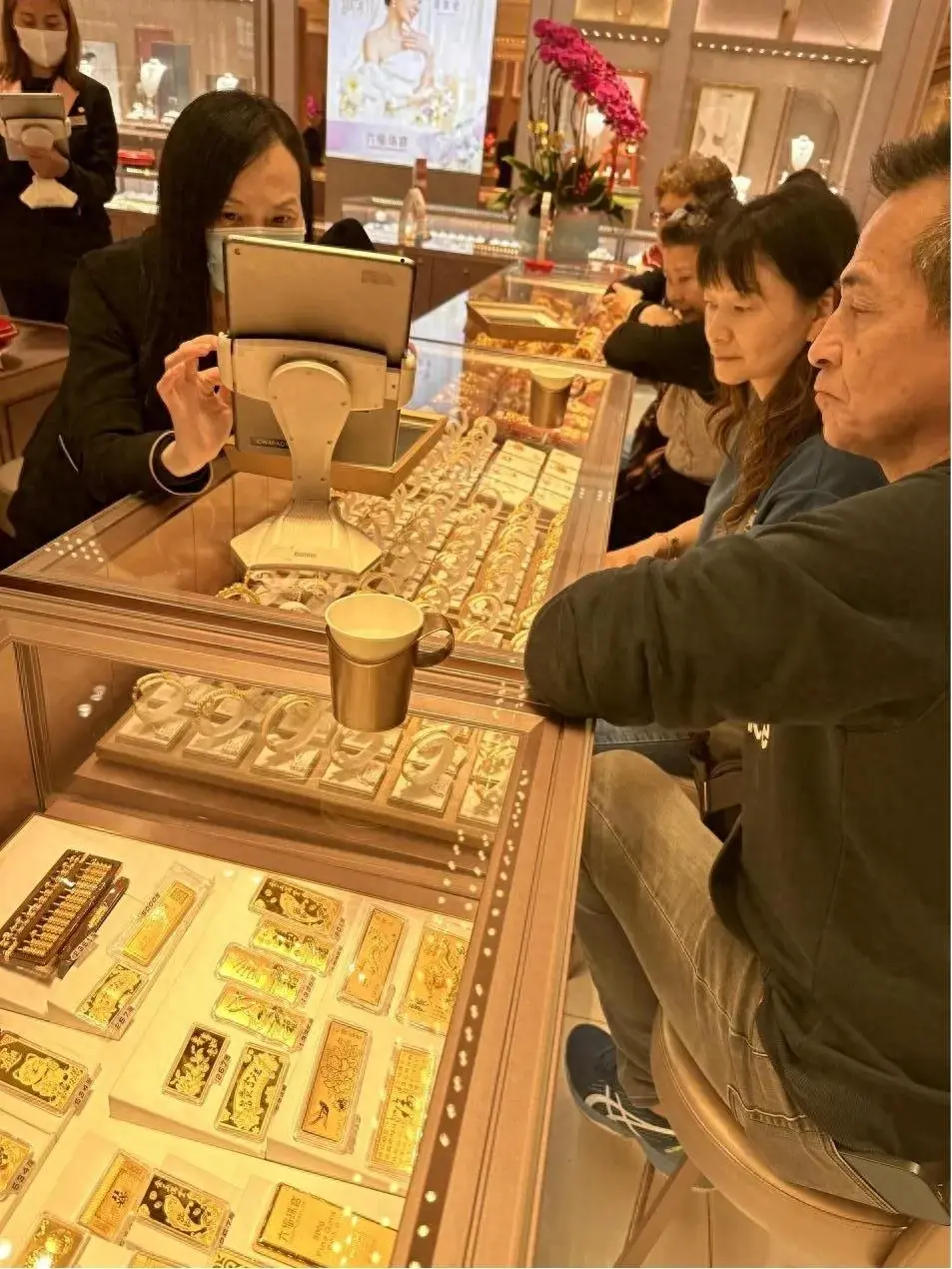 你可以想象一下當時的場景:人山人海、擁擠得連一根頭發都擠不進去。游客們揮舞著信用卡、掏出現金,對著鏡臺里的黃金飾品流連忘返。他們手忙腳亂地試戴項鏈、戒指,一副貪婪而欣喜的表情掛在臉上。