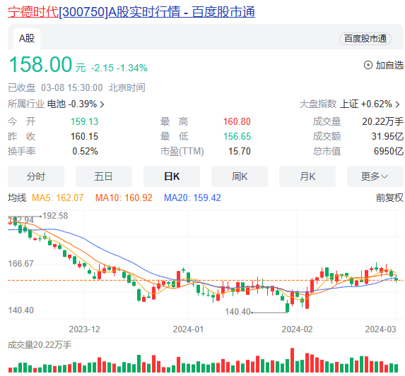 周日,寧德時(shí)代突然傳來(lái)重磅利好。摩根士丹利發(fā)布報(bào)告,將中國(guó)電池巨頭寧德時(shí)代(CATL)的評(píng)級(jí)上調(diào)至“超配”,并設(shè)定目標(biāo)價(jià)為210元人民幣。而截至3月8日收盤(pán),寧德時(shí)代僅報(bào)158元/股,也就是說(shuō)這只股票離目標(biāo)價(jià)還有30%以上的空間。